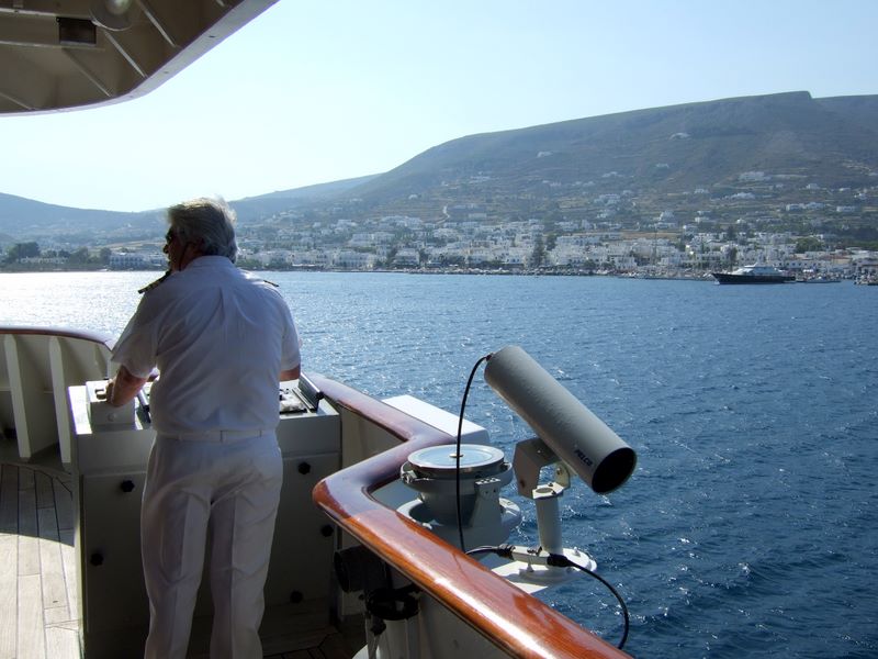 Unser Kapitän steuert Paros an.